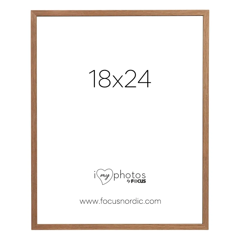 Oak colored frame with a classic style. The frame has a thin profile. The frame comes with real glass that highlights the best in your photos. With a back support which also allows you to place the frame on a shelf or table. Frame profile is 22mm deep and 13,5mm wide. The picture size of the frame is 18x24cm.