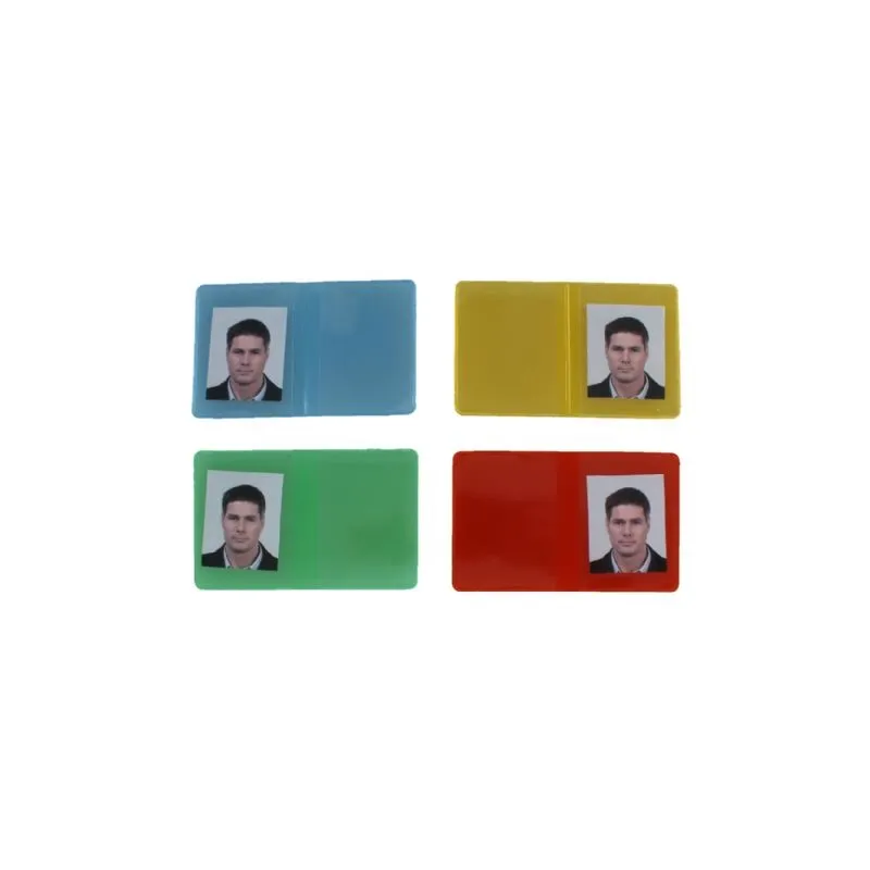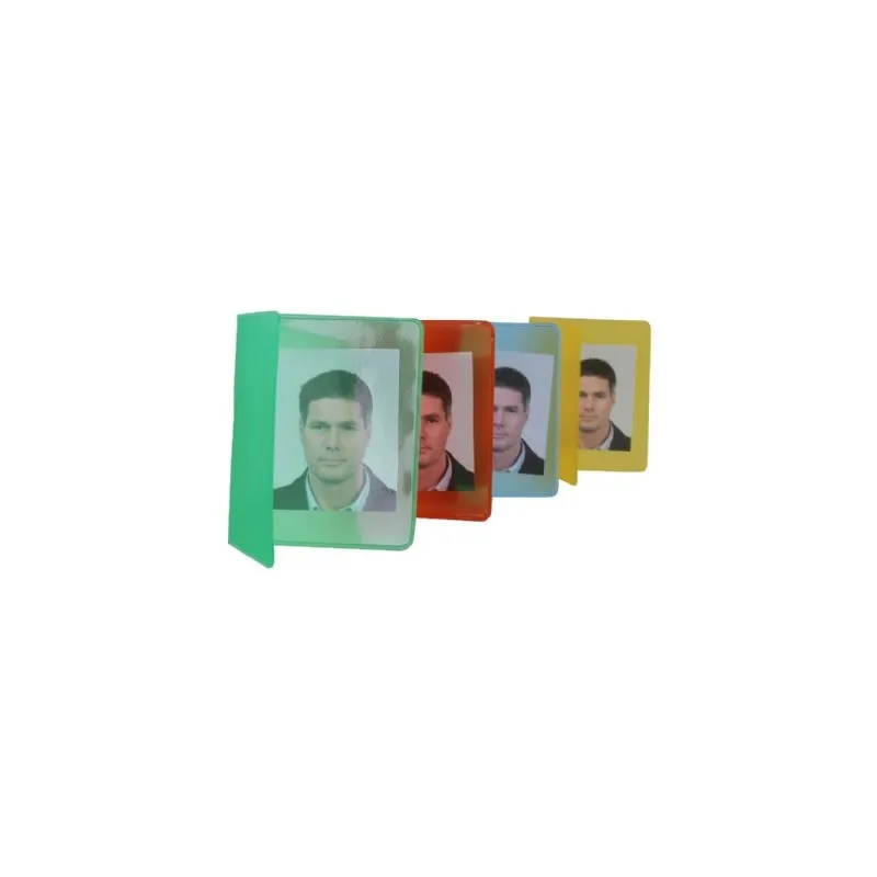 The colored Passport Photo Wallets are made of a strong PVC material and are finished with a glossy coating. The inside of the wallet consists of two compartments, where you can store one or more passport photos. The dimensions are 53 x 65mm (W x H) when folded. You will receive 250 passport photo wallets, divided proportionally in the colors blue, green, yellow and red.