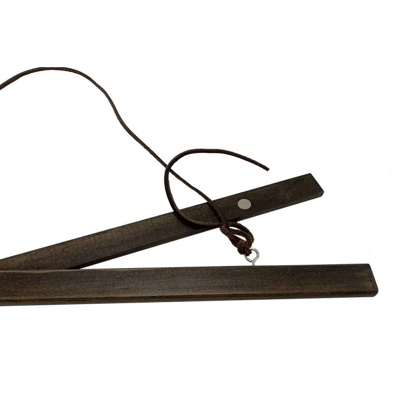 Included with your Poster Hanger is a stylish leather strap, complementing the minimalist aesthetic. Begin by attaching the provided loops securely into the wooden rails, then easily tie the leather strap onto these loops. A simple knot is enough, ensuring it is tightly fastened for reliable display.