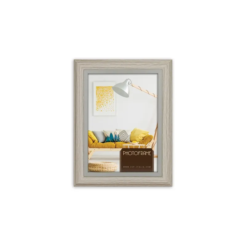 The LF423W from Zep Italia is a grey photo frame which is suitable for 1 photo of 20x30 cm. The photo frame features a wooden look. The total dimensions, including the frame, are 24x34 cm.