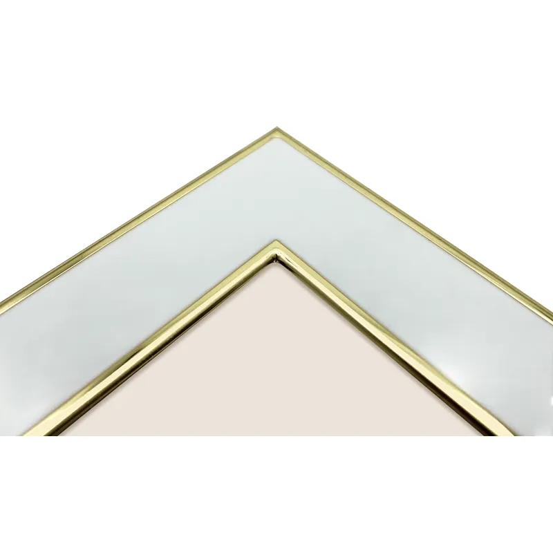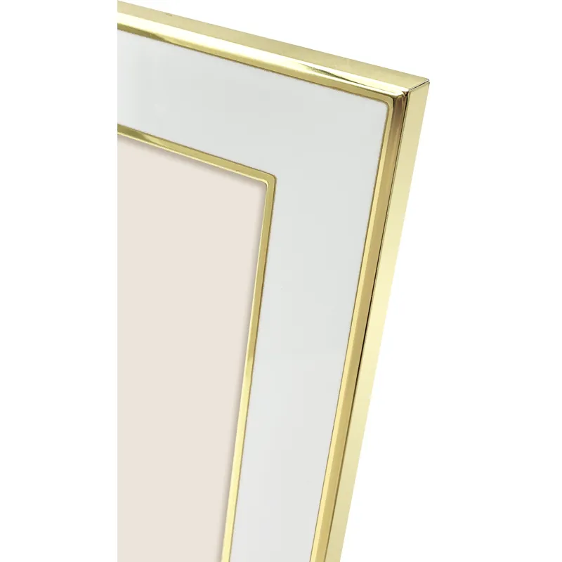 The outstanding feature of the Magnolia frame is its soft enamel surface, which gives the metal structure a shine similar to porcelain. The thin gold-colored finish along both the inner and outer edges frames your image with an exquisite touch of warmth, providing the necessary dose of brightness and sophistication. The pure white enamel layer offers a fresh and neutral canvas that highlights a wide range of interior styleswhether you are creating a modern gallery wall or accentuating a classic vignette.