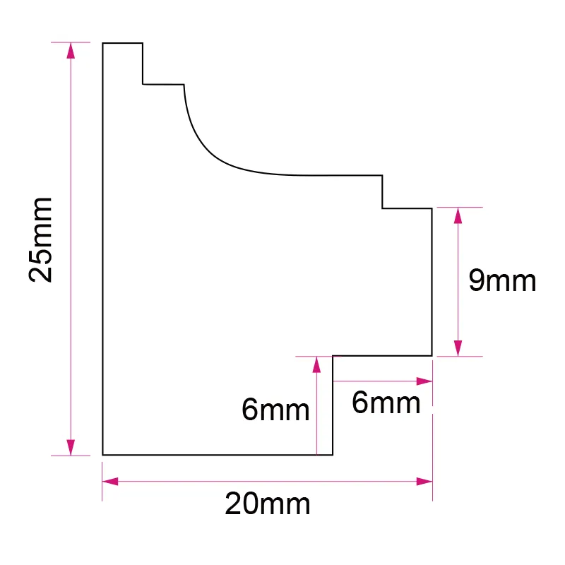 The softly shaped, sculpted profile, as shown in the detailed drawing, gives a gentle character without obscuring the image. Whether you frame a family portrait or a beloved piece of art, Calla provides a clean and uplifting presentation.