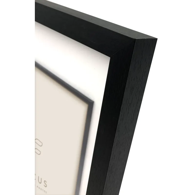 A distinctive feature is the passepartout with a built-in inner frame, made from the same black FSC-certified MDF as the outer frame. This creates a cohesive, gallery-inspired display that adds depth and highlights the image in a visually striking way.