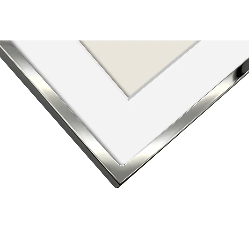 The frame is bordered with a silver metal edge that complements the frames finish and sophistication. This modern mirrors polished metal finish makes the frame suitable for both bright, airy spaces and more elegant, monochromatic interiors.