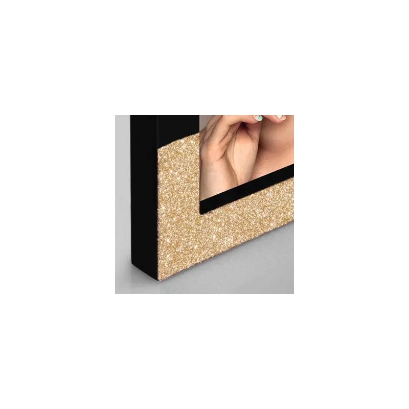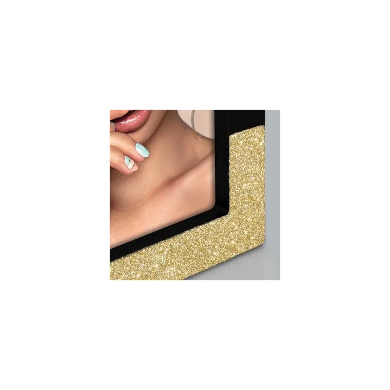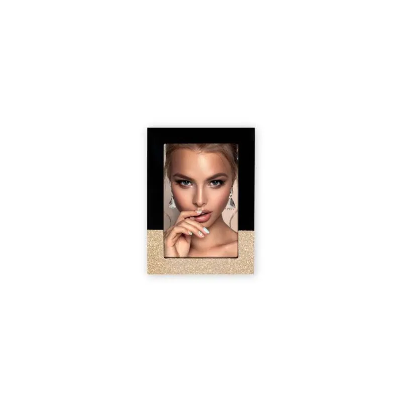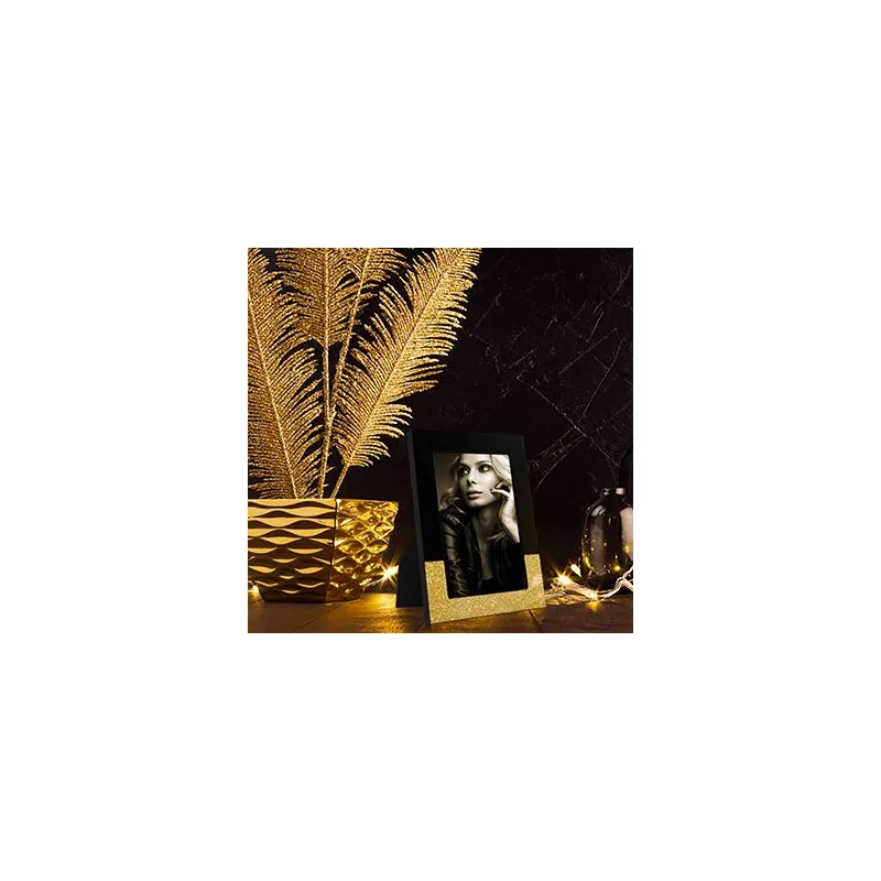 The Zep Photo Frame ZA946B Morgex Black 10x15 cm is a wooden photo frame suitable for 1 photo of 10x15 cm. It features a Morgex Black wooden frame with black and gold colors, a glitter effect, and is available in different sizes. This frame can be used as a table or wall version, making it suitable for both home and office. It also makes for an original gift idea. The total dimensions, including the frame, are 13x18 cm (W x H).
