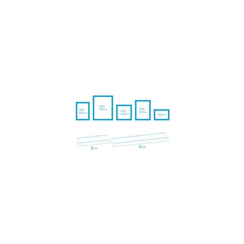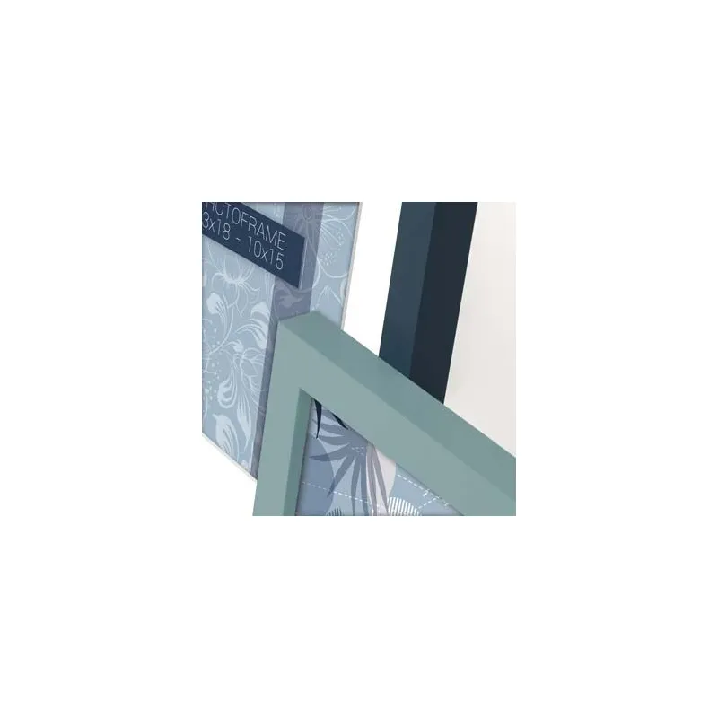 The EG958 from Zep Italia is a multicolored photo frame suitable for various photo sizes including 10x15, 10x15/13x18, 10x10/15x15, 10x15/15x20, and 12x17/20x25cm. This photo frame features a wooden look and belongs to the Maratea (kit 5 pcs + 2 shelf) series.