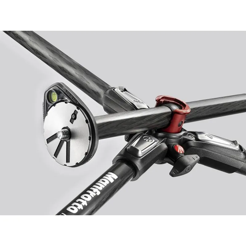 A bubble level is built in to the top of the centre column for precise framing. The bubble level rotates freely around the centre column, so it can be positioned wherever it's easiest for you to see it while adjusting the tripod, and without it either being obscured by the mounted head and camera, or getting in the way of head or camera controls.