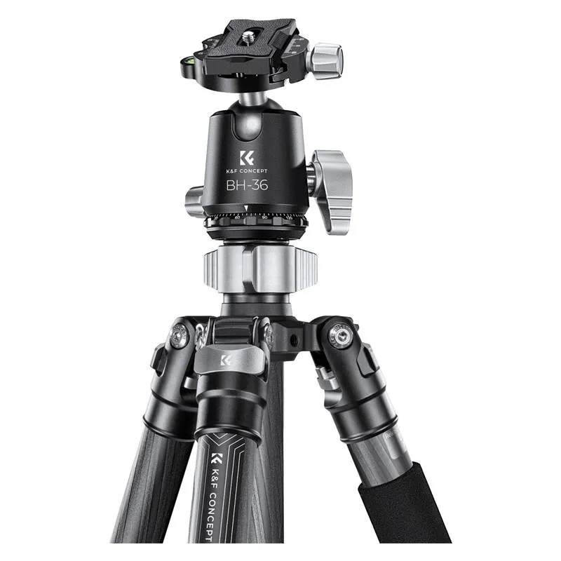 The K&F Concept X284C4 tripod with BH-36 head is a professional-grade tool for photographers. It supports a maximum load of 16 kg and features a robust carbon fiber construction, ensuring stability and durability. The tripod extends to a height of 172.5 cm and folds down to 50 cm for easy transport. The aluminum alloy ball head allows for precise adjustments and panoramic shots.