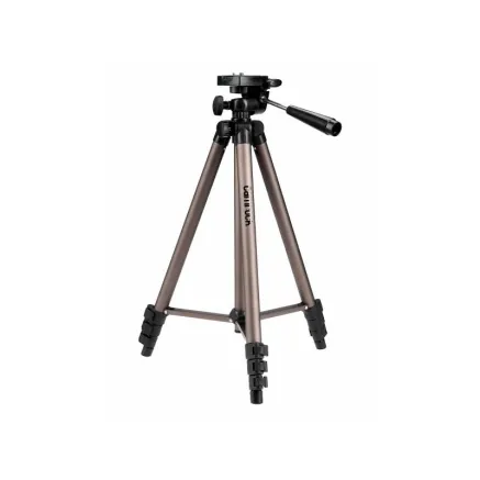 Tripod with a three-way head Smartphone & action cam mount included Maximum height: 159.5 cm Can carry up to 3.5 kg Bubble level & quick release plate