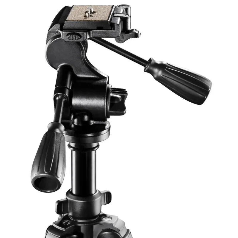 The panhead has a bubble level for exact leveling. Naturally, a quick-release plate with a 1/4 inch camera connection is available as well as a 1/4 inch and 3/8 inch tripod connection.