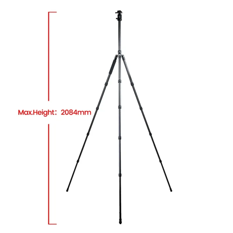 The Fotopro X-65C will be the perfect choice if you are looking for a handy tripod that offers an unbeatable maximum working height. In the transport position, it measures just 51 centimetres. When all the legs are fully extended, you get a height of 208.4 cm! The tripod has a three-stage leg tilt mechanism. Each leg consists of 5 sections, locked in place with a convenient swivel clamp system. The tripod is great for outdoor use as well as for home use.