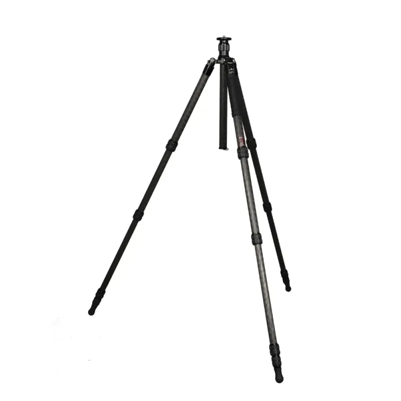 The tripod has a three-stage tilt mechanism for the legs, which are made up of 5 sections, locked in place with a convenient swivel clamp system. You can adjust its height to the unevenness of the terrain in seconds. If required, you will hang an additional load on the special extendable hook. The double-sided mounting element, which allows you to install a head on the tripod, supports 3/8″ and 1/4″ threads. This makes the whole design more versatile and you can connect even more accessories to it.