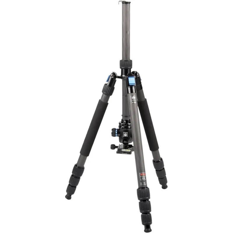 The Sirui W-2204K20 Carbon Fiber Tripod with K20X Ocean Runner Ball Head Kit is a 4-section, 10-layer carbon fiber support with a load capacity of 39.7 lb. By unlocking the twist-locks, extending the legs, and pulling the rapid center column up, the tripod can reach a maximum height 74.9". With the legs splayed out and the column split to a short column, you can lower the tripod down to 10.1" off the ground.