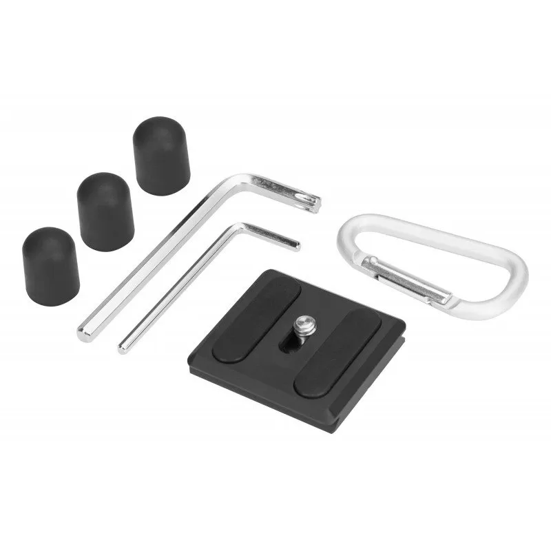 Included is a carrying case with a carabiner, useful during transport, and a set of spare rubber pads for the tripod feet.