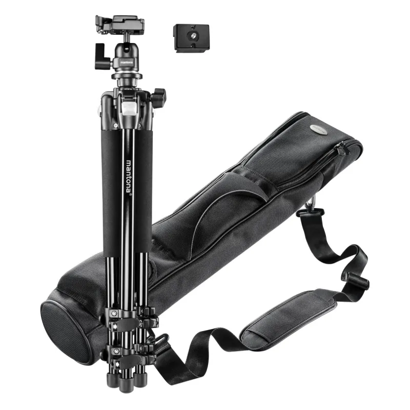 For studio at home or on the road - this set gives you everything around the tripod. The mantona Scout tripod not only is very stable, but also furnished with many convenient elements. A ball head is already included in the scope of delivery. A simple to change quick-release plate and a robust tripod bag with high carrying comfort additionally complete the set.