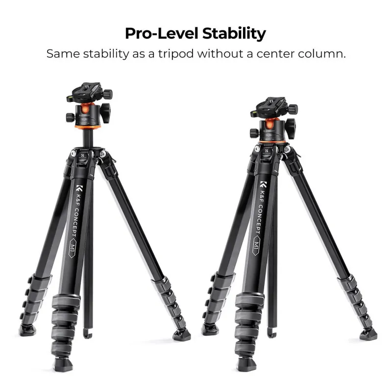 The K&F Concept M1 is a compact and versatile tripod designed for photographers, vloggers, and travelers. Its lightweight aluminum construction makes it ideal for outdoor use, measuring just 50 cm when folded and weighing only 1.8 kg.