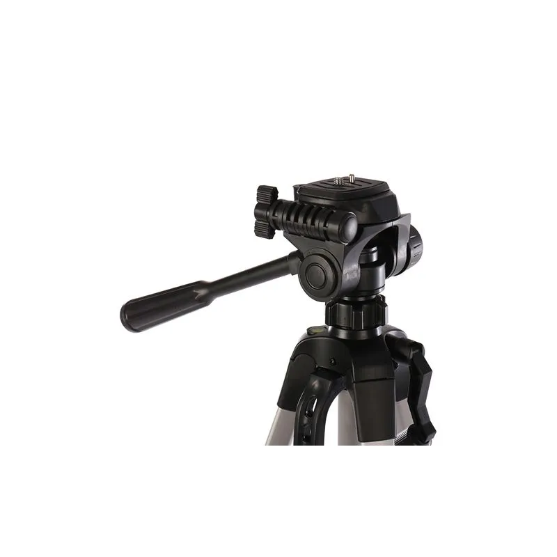 The WT-3520 is an aluminum tripod with head from Nest. Because the tripod is made of aluminum it weighs less than a kilo. The tripod has two spirit levels, one on the tripod itself and one on the head. In addition, the tripod has a handle for carrying / moving the tripod and a lever for moving the head. The head can be moved front to back, left and right (360°), finally you can also tilt it 90°. In short, whether you always want to take pictures from the same position or when you want to make videos with smooth movements, the WT-3520 is a tripod for everyone.