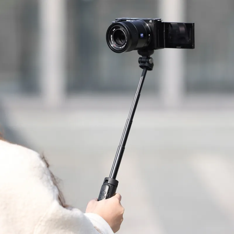 Stable, flexible, and wireless, the Ulanzi RMT 01 Vlog Wireless Remote Control Tripod is made of durable aluminum alloy and features a 1/4 20 thread for attaching accessories. The tripod has wireless Bluetooth control integrated into the handle, making it compatible with mirrorless cameras, digital cameras, camera cages, smartphone holders, and action cameras weighing up to 1.5 kg.