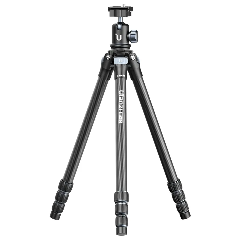 The Ulanzi MT 60 Carbon Fiber Travel Tripod has a strong carbon fiber construction, making it lighter and stronger, ideal for photographers on the go. It is height adjustable up to 162 cm and features a 1/4 screw hole for attaching accessories.