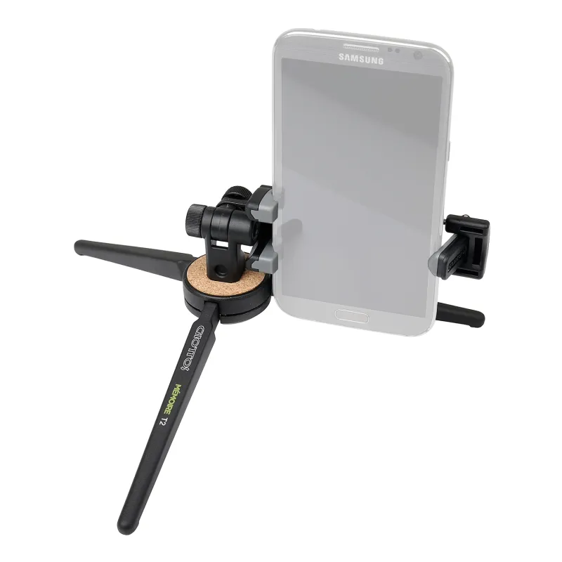 The Giottos Mmoire T2 is a very handy and robust ministative with telephone holder. The telephone holder is suitable for used smartphones with a width of up to eight centimeters. By loosening a screw on the back of the telephone holder, it can be used both horizontally and vertically. If you remove the telephone holder, a standard 1/4 thread is released on which you can place each camera with a tripod connection. The T2 table can be found a maximum height of 5.6 centimeters and has a maximum load capacity of five kilograms