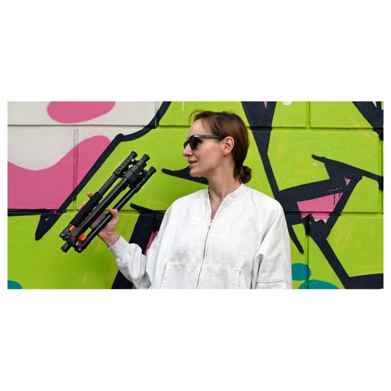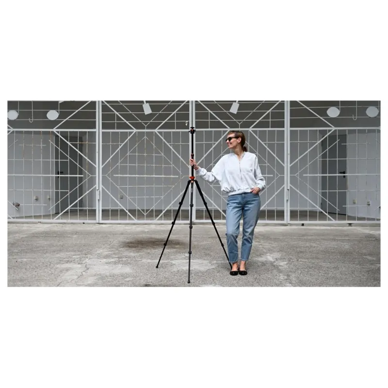 Camrock Wanderer T42 trikojis su AL-4AS kamuoliuku galva yra universalus sprendimas fotografams ir vaizdo operatoriams, derinantis nešiojamumą, stabilumą ir patogumą. Jis siūlo maksimalų darbo aukštį 175.7 cm su transportavimo ilgiu 42.8 cm ir sveria 1.5 kg. Aliuminio konstrukcija, 12 kg trikojio apkrovos talpa ir kamuoliuku galva su burbuliuku leidžia tiksliai rėminti tiek lauke, tiek studijoje.