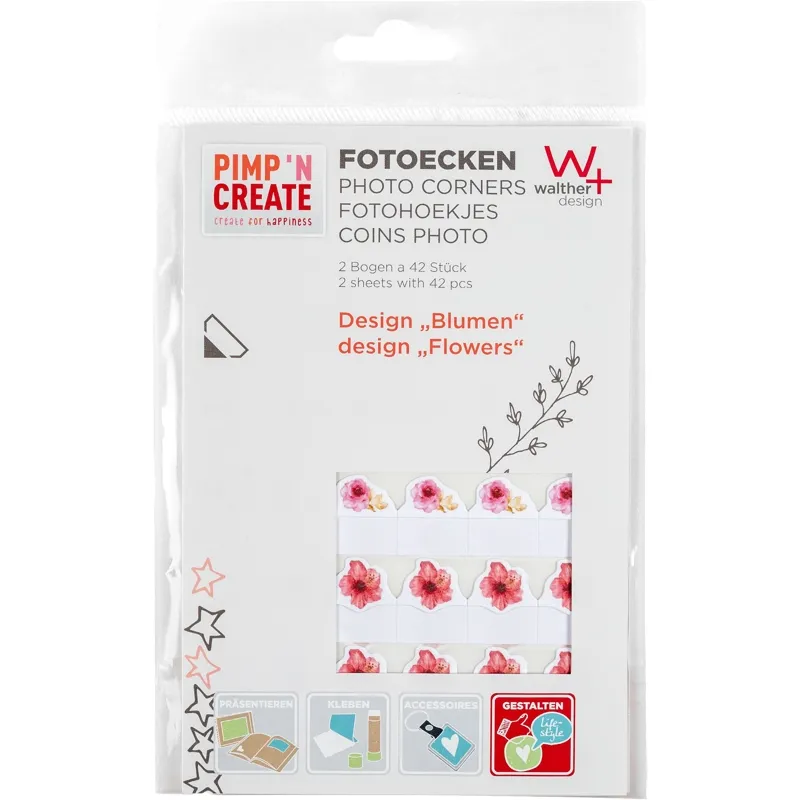 WALTHER PHOTO CORNERS FLOWER DESIGN 2 SHEETS OF 42 PCS FE084F