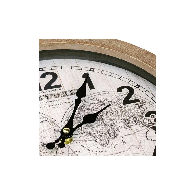The Zep Wall Art Clock Yvonne HHC535 30x6.5 cm by Zep Italia is a wooden clock. The round clock features an image of the world. The clockwork is recessed in the clock which creates a special effect. The size of the clock is 30 x 6,5 cm.