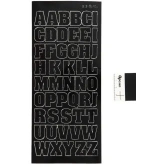 Selfadhesive stickers in black foil. Uppercase letters in a larger size.