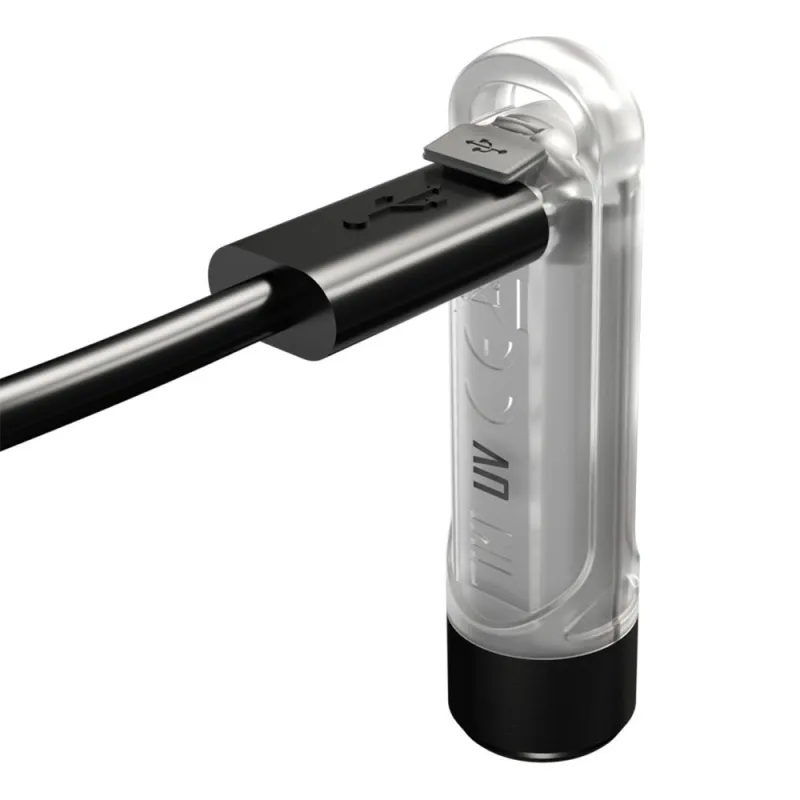 The primary UV light utilitzes a TIR ( Total Internal Reflection) lesn for a uniform and soft beam. Is contains a Built-in rechargeable Li-ion battery and charging circuit with a micro-USB port