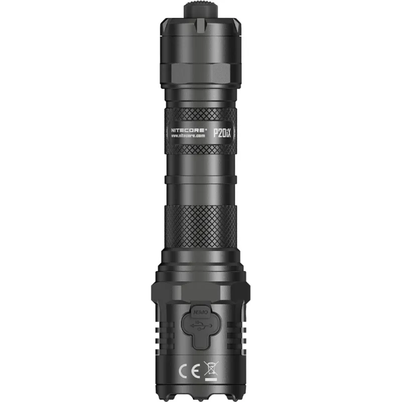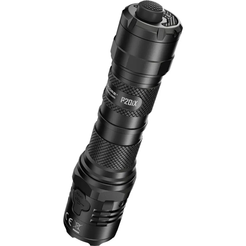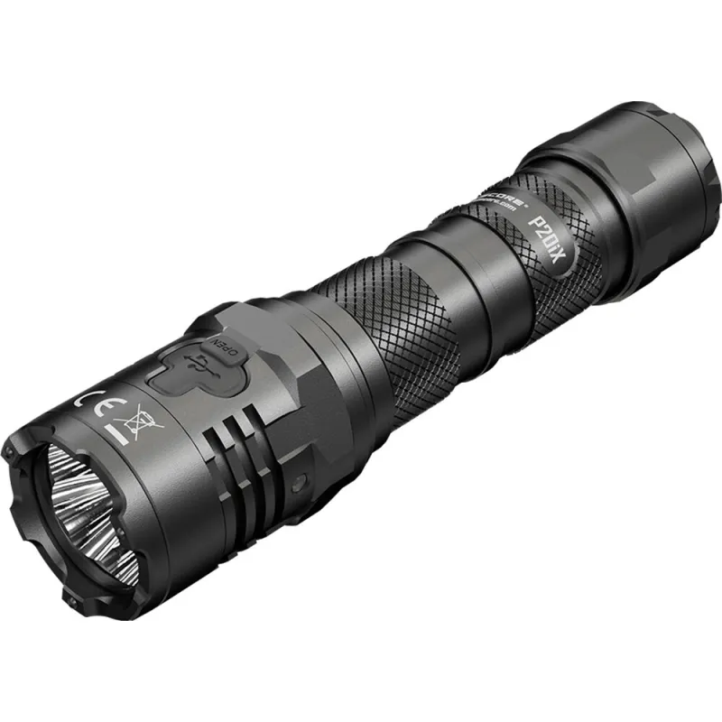 The lamp's reflector features a crystal coating and precision digital optical technologies for long focal length. The P20iX's impact surface has very hard silicon nitride ceramic tips, making the impact surface more effective in breaking glass or in self-defence. Built for durability, it has an aluminium body with a Type III hard-anodised black finish, an anti-roll ring, and diamond-pattern knurling for a secure grip. O-ring sealed and IP68 rated, the lamp is submersible to 6.6', and shock resistant to 6.6 Feet