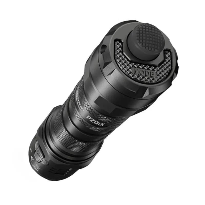 The Nitecore P20iX Rechargeable Tactical LED Flashlight has a maximum output of 4000 lumens, a 350 hour burn time and a torch. The lamp features 4 Cree XP-L2 V6 LEDs, The lamp has two tail switches - a raised push button for on/off on a momentary or constant power basis and a mode switch for selecting high, medium, low or strobe modes. At any mode or when the lamp is off, you have direct access to the randomly flashing strobe via the mode switch.
