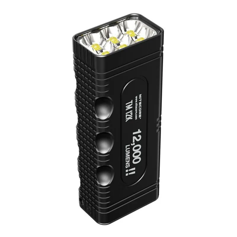 The Nitecore TM12K rechargeable torch is ideal for emergencies, conducting searches or surviving an intense tactical deployment. The TM12K has two side buttons and a tail switch that control five brightness levels, so you can use the torch all day long.