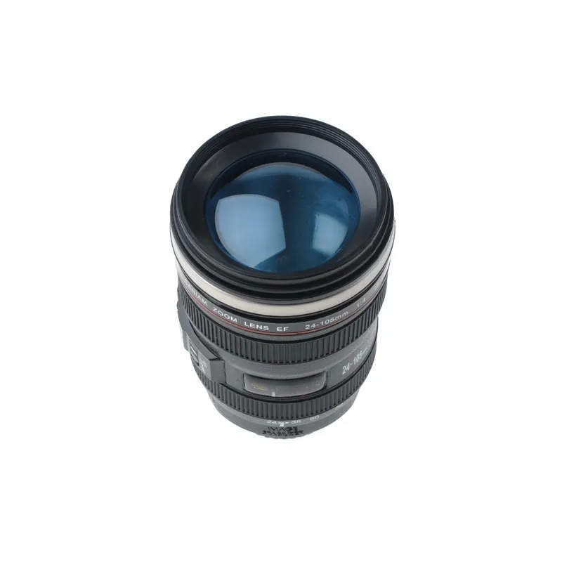 Drinking Cup 24-105 Lens with Drinking Opening The lens drinking cup is a unique product inspired by the shape of a camera lens. It is a durable drinking cup made of high-quality material that is both practical and stylish.