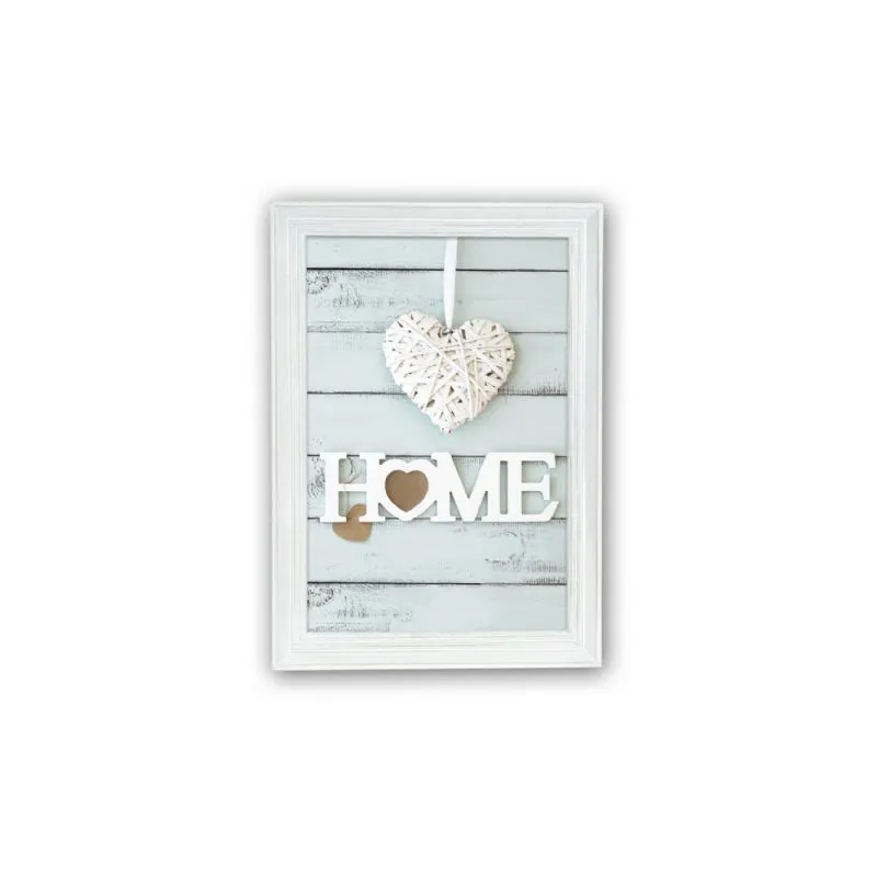 - Features a white vintage wooden frame