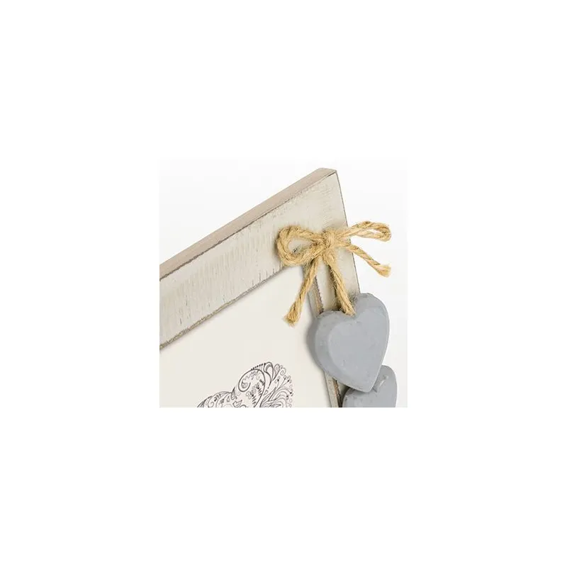 The Zep Photo Frame HHP168 Metz Cream is a wooden photo frame suitable for 1 photo of 15x20 cm. It features a vintage beige wooden frame with a 3D heart-shaped decoration, available in different sizes, perfect for a love theme. The total dimensions, including the frame, are 19x24 cm (W x H).