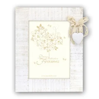 - Features a white vintage wooden frame
