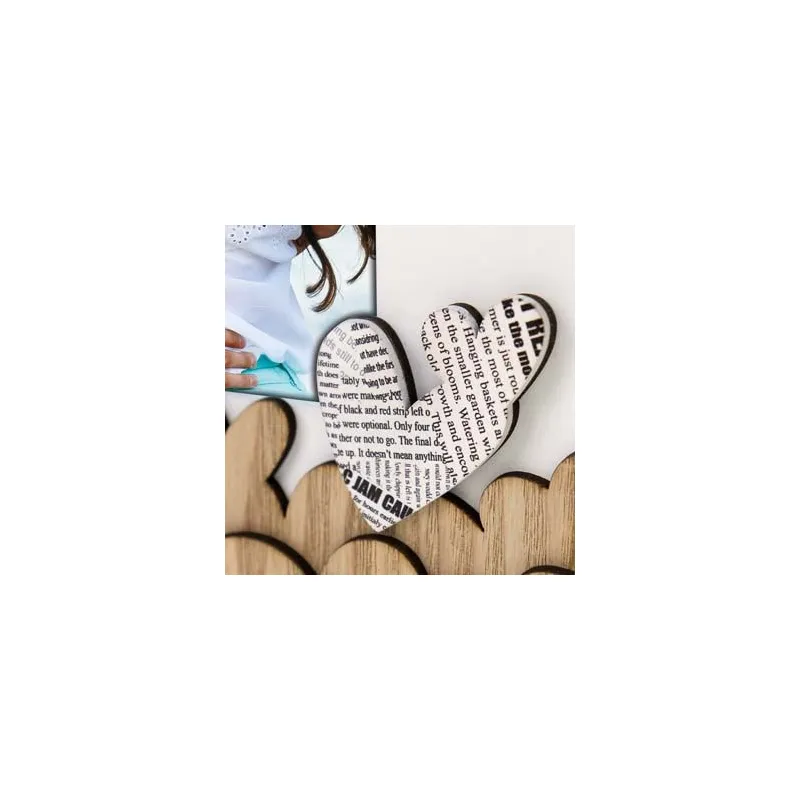 The Zep Photo Frame HP657 Romina 13x18 cm is a wooden photo frame suitable for 1 photo of 13x18 cm. It comes in white and brown colors with a decorative print and a 3D heart-shaped decoration on overlapped levels. The frame is available in table and suspension versions, with a love theme. The total dimensions, including the frame, are 19.9 x 24.5 cm (W x H).