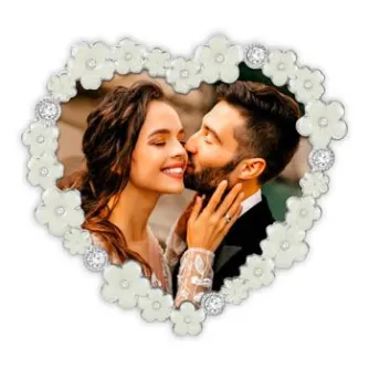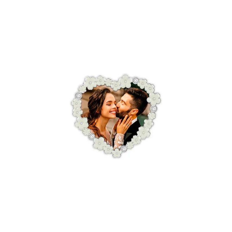 The Zep Photo Frame KV3944 Vivaldi 10x10 cm is a photo frame suitable for 1 photo. You can place 1 photo of 10x10 cm in this frame. Puccini metal frame, with glossy finish, heart-shaped, 3D decorative profile with flowers and rhinestones, elegant and classic style, with velvet back, table version, ideal to celebrate birthdays and anniversaries, suitable for special gifts or precious presents. The overall dimensions, including the frame, are 12 x 12 cm (lxw).