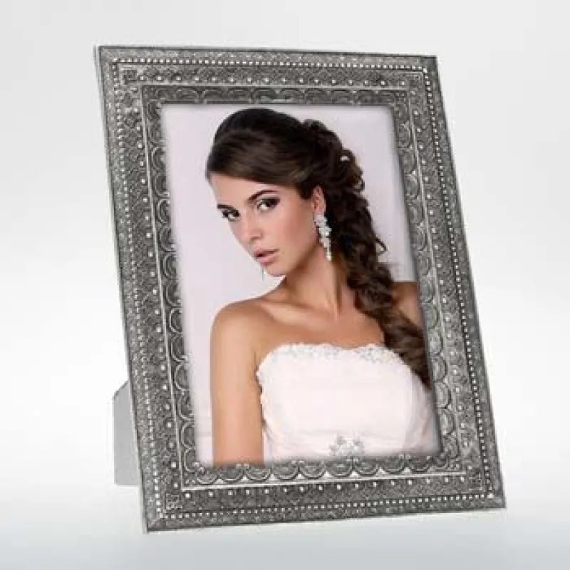 The Zep Photo Frame EH9346 Roche 10x15 cm is an elegant photo frame suitable for 1 photo of 10x15 cm. It is made of Roche resin, silver-plated, with classic decoration in relief. This frame has an elegant and classic style, designed for tabletop display. It is available in different sizes, perfect for celebrating anniversaries and birthdays, and ideal for precious gifts. The overall dimensions, including the frame, are 14.5 x 19.5 cm (LxW).