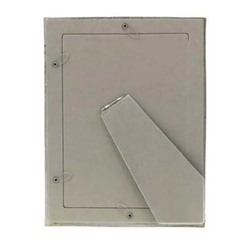 The photo frame is suitable for vertical placement and can be displayed on a surface.