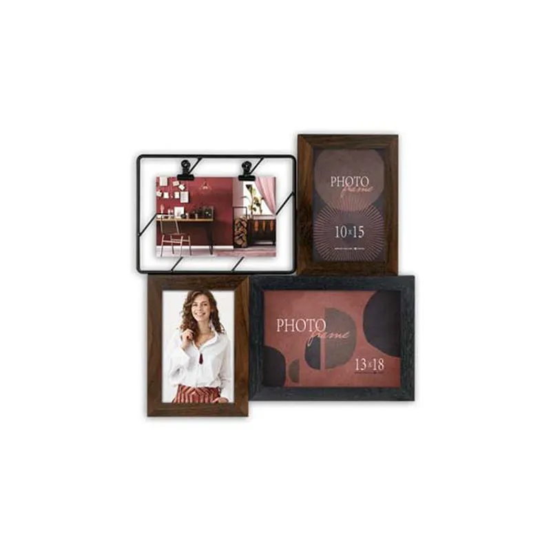 The DN473 from Zep Italia is a photo frame suitable for 4 photos of 13x18 cm. The frame features a multiple frame design with a metal photo clamp. The total dimensions, including the frame, are 35x35 cm. It can be placed vertically or horizontally and can be hung on the wall. This picture frame is made in the European Union.
