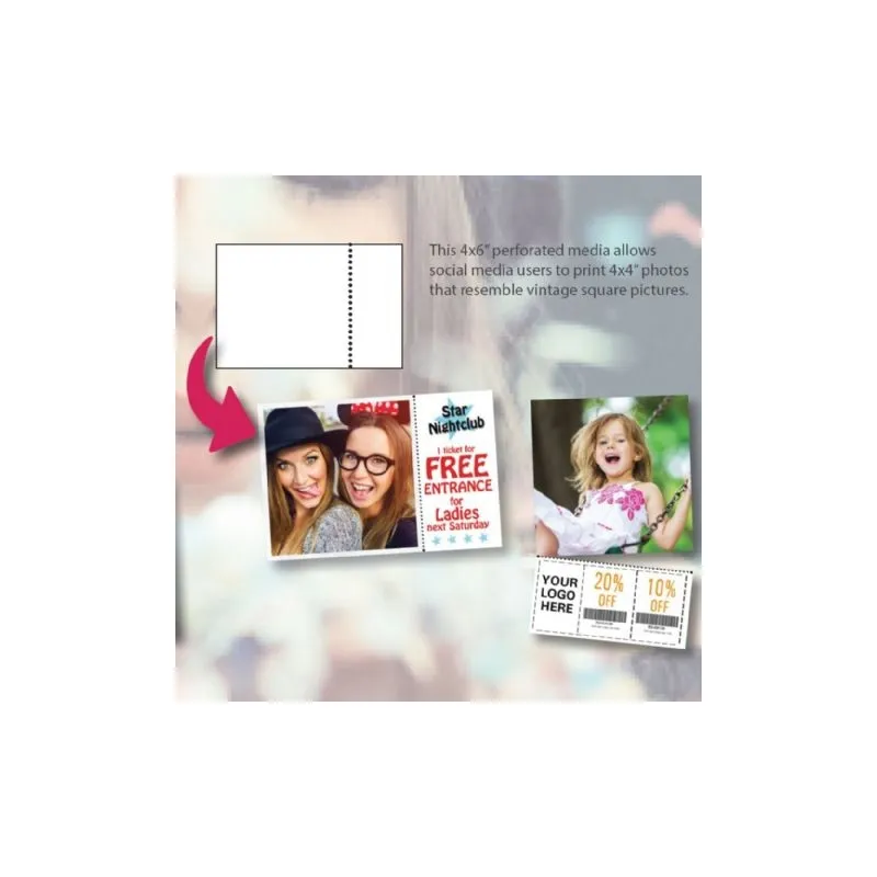 ;The paper is 10 x 15cm in size and is equipped with a vertical perforation, which can be torn off. The paper creates a unique 10 x 10cm print and a tear-away 5 x 10cm strip. The 5 x 10cm tear-away strip can be used for coupons, offers, marketing messages etc.