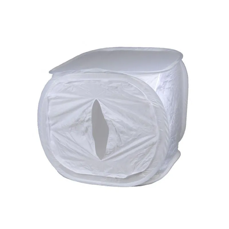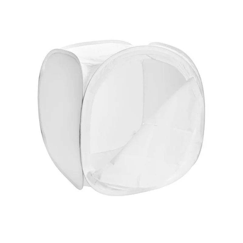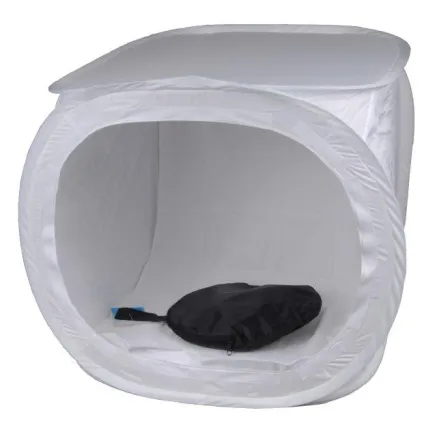 The Falcon Eyes light tents are especially designed for product photography of for instance products such as glass, synthetics, jewellery, watches, ceramics and electronics. The light tent is foldable and with the supplied case easy to take along on location. The diffuse material is very suitable for minimising disturbing reflections and spreads the light equally. The material of the light tent provides a neutral colour temperature. The front of the tent can be closed with the supplied cloth which can be fixed with Velcro. In the cloth is an opening for the lens of your camera. For an ideal lighting the box can be used in combination with normal daylight, continuous lamps or studio flash units.