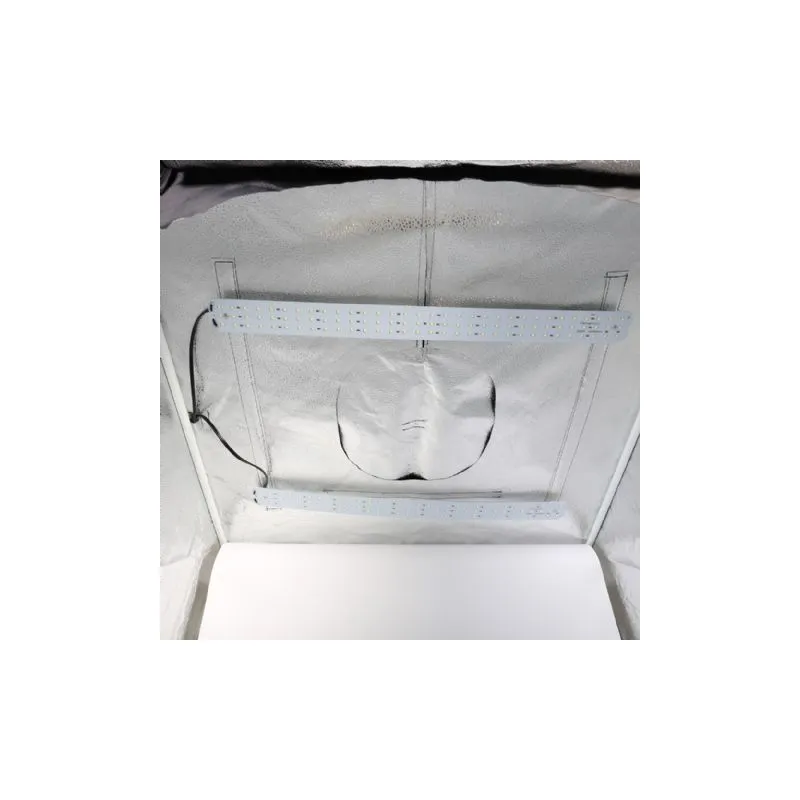 ;You can photograph your products from the front as well as from the top of the Photo Box. It is an ideal complete mini-studio with the supplied accessories. With the box you can take product photos of objects up to about 45 cm. Think of jewelry, glasses, watches, small electronic equipment, vases and other small items. The backgrounds are made of flexible vinyl that you can easily clean with a cloth. With the help of the 2 separate rotary knobs you can adjust the brightness of the LED strips individually. The diffuser fabric can be hung from the frame at the top.