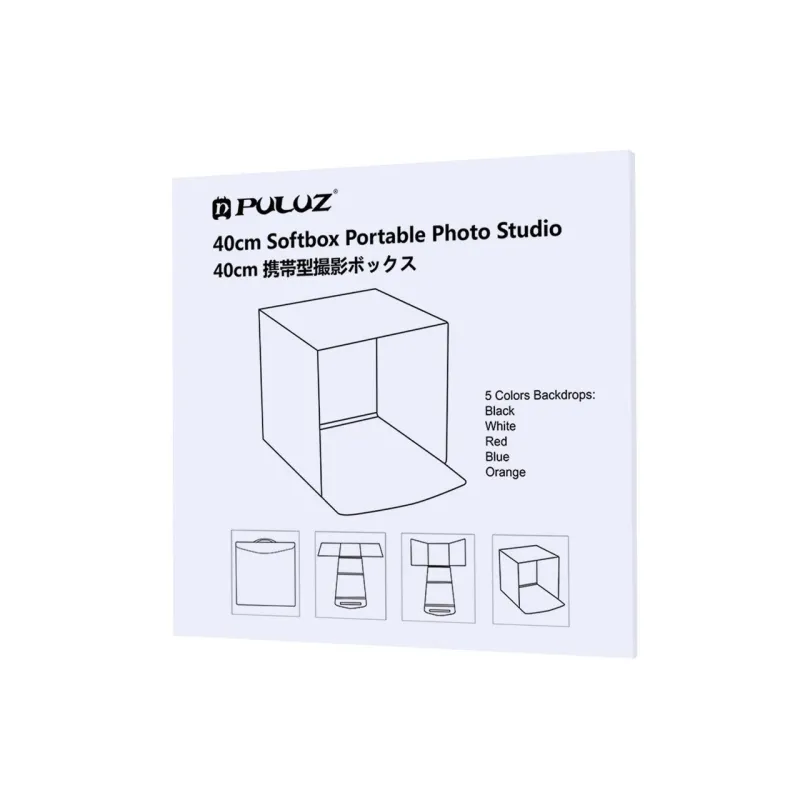 PULUZ 60 x 40cm bešešėlis palapinė:- Pagerina produktų fotografijos kokybę- 3 apšvietimo režimai ir 10 ryškumo lygių- 4 spalvoti PVC fonai- Lengvas montavimas ir naudojimas- Difuzinė medžiaga įtraukta