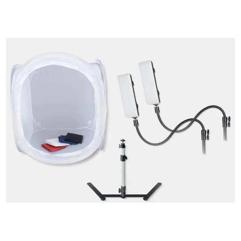 The 60x60x60 cm large light tent allows you to take professional product photos without annoying light reflections. Thanks to the LED lamps included in the set, providing the perfect lighting for your products couldnt be easier.
