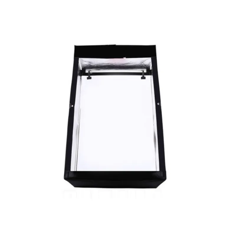 BRESSER BR-PHT160 light box can be used lying down or standing up and also serves as a softbox in itself by draping studio lamps or studio flashes inside behind the diffuser cloth.