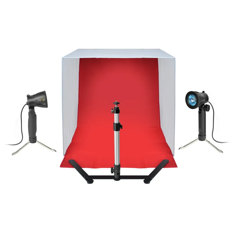 Practical complete set for perfectly illuminated product photos with different backgrounds.