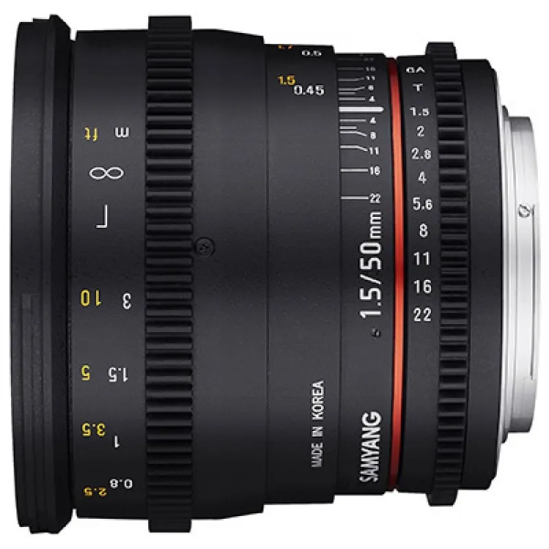 Samyang 50mm T1.5 AS UMC is one of Samyang Optics VDSLR lens line for full frame image sensor size. The lenses produce the same image color and have a united location of aperture and focus gear ring to maximize the convenience when filming.