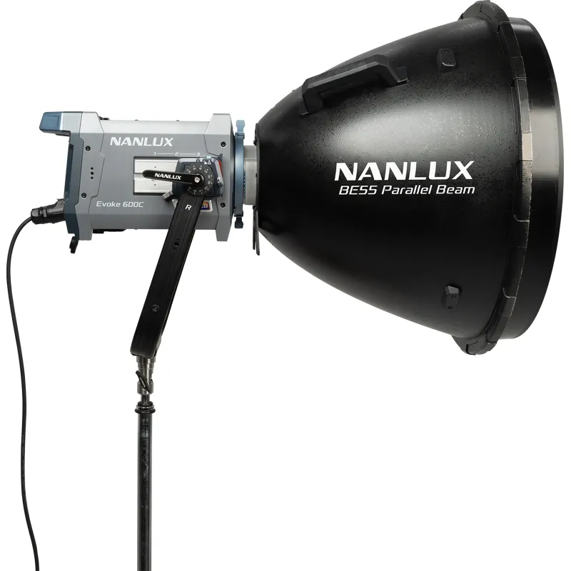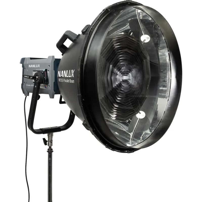 BE PARALLEL BEAM REFLECTOR sukurtas BE ir Bowens tvirtinimams iki 800W, teikiantis didelio intensyvumo beveik paralelinį spindulį profesionaliems apšvietimo scenarijams. Jo 8 laipsnių spindulio kampas koncentruoja išėjimą, suteikdamas stiprų, fokusuotą apšvietimą, todėl jis yra idealus ilgų atstumų nustatymams, natūraliai atrodantiems atšvaitams ir detaliems taškiniams apšvietimams. Naudojant su NANLUX Evoke 600C, BE PARALLEL BEAM REFLECTOR generuoja apie 23,4 karto didesnį išėjimą nei nuogas šviesos šaltinis (5600K esant 5 m), žymiai sumažindamas išnykimą per atstumą ir leidžiant tvirtinimams būti toliau nuo talentų ar scenos elementų.
